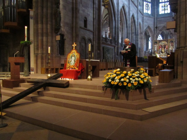 Trotz strahlendem Sonnenschein und sommerlichen Temperaturen am Ostermontag: Der ökum. Gedenkgottesdienst um 17 Uhr wag sehr gut besucht - im Freiburger Münster war kein Platz mehr frei.