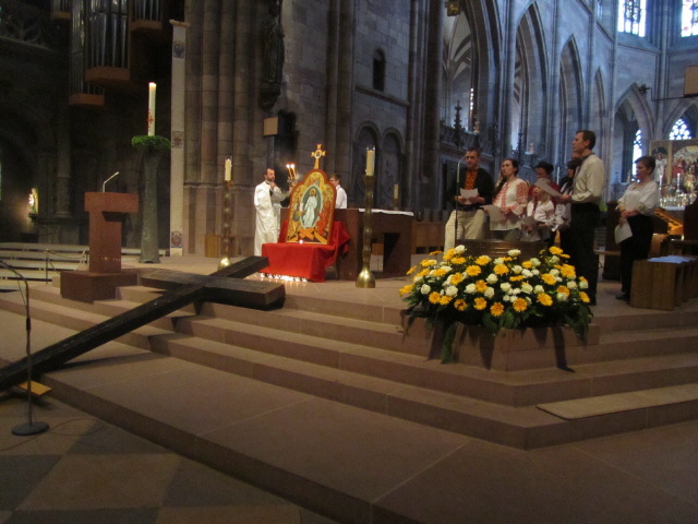Münster am 25.4.2011:  Das Wyhler Kreuz am Altar zur Mahnung Münster am 25.4.2011:   Münster am 25.4.2011:  Chor der  Ukrainisch-Griechisch Katholische Kirche