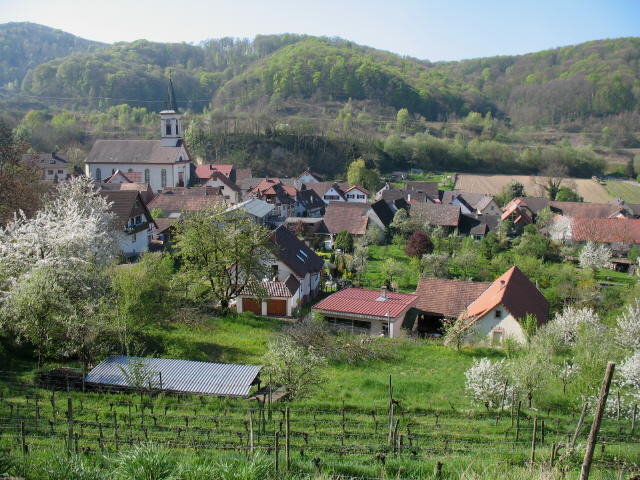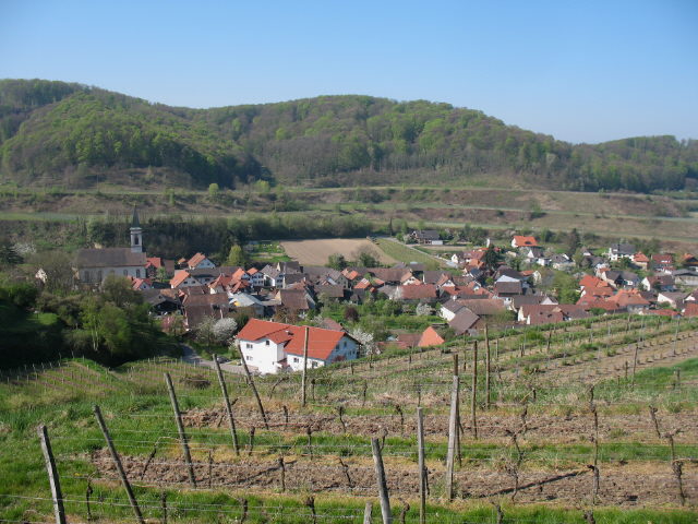 Blick vom Galgenberg nach Südosten auf Amoltern am 15.4.2007 Blick vom Galgenberg nach Südosten über den Heidehof auf Amoltern am 15.4.2007 Blick vom Galgenberg nach Südosten über den Steinhaldehof und Amoltern bis zu den Vogesen am 15.4.2007