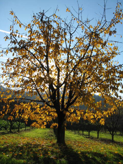 Obstbaum im Herbstlauf bei Amoltern am 15.11.2008 - Blick nach Süden