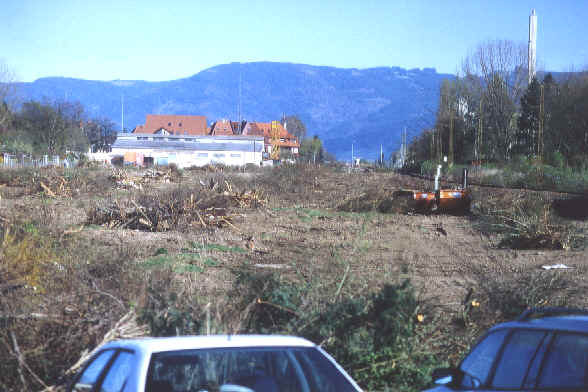 Schrebergärten sind nun platt, es wird abgeholzt. Oben die Lindenmatte