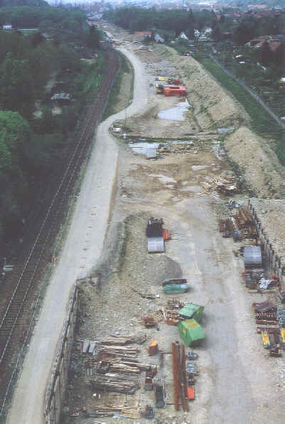 mit Tele: Trasse der B31 hin zur Stadt. Hammerschmiedstr., Rest