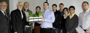 Die Studenten der Hochschule Furtwangen (rechts) übergeben ihr Werk an die Caritas-Repräsentanten Wolfgang Grözinger, Siegfried Fuchs und Doro Irmler (von links). Professor Werner Ruoss (ganz links) war mit der Leistung seines Teams sehr zufrieden. Foto: Sabine Model