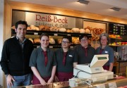 Björn Reiß und das Team der Bäckerei Reiß mit Lisa Wirbser, Maria Marcucci, Tina Weber und Filialleiterin Marion Finkbeiner (v.l.n.r.) freuen sich, mit den verlängerten Öffnungszeiten den Kunden am Kirchzartener Bahnhof einen erweiterten Service bieten zu können. Foto: Gisela Heizler-Ries