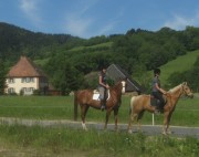 Blick nach Südwesten über den Küchlehof ins Geroldstal am 28.5.2013 – Reiterinnen vom Steiertbartlehof