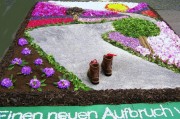 Am Sonntag feierte bei schönstem Sonnenschein die katholische Pfarrei St. Urban in Herdern das Patrozinium ihrer Kirche. Wie seit jeher gab es auf dem Kirchplatz vor dem Hauptportal wieder einen bunten Blumenteppich. Dieser stand unter dem Motto des diesjährigen Katholikentages „Einen neuen Aufbruch wagen“. Anziehungspunkt des von den jungen Frauen der Gemeinde gestalteten Teppichs waren ein Paar Wanderschuhe, Größe 38, gut in Schuss und von einer Pfarrgemeinderätin zur Verfügung gestellt. Doch wer dachte, die Schuhe wären am Abend bestimmt nicht mehr vorhanden, sah sich getäuscht: beim Abräumen waren sie am selben Platz und gingen wieder an die Eigentümerin zurück, die sie im Herbst dem Kleidermarkt des „Dritten-Welt-Teams“ zur Verfügung stellen wird.