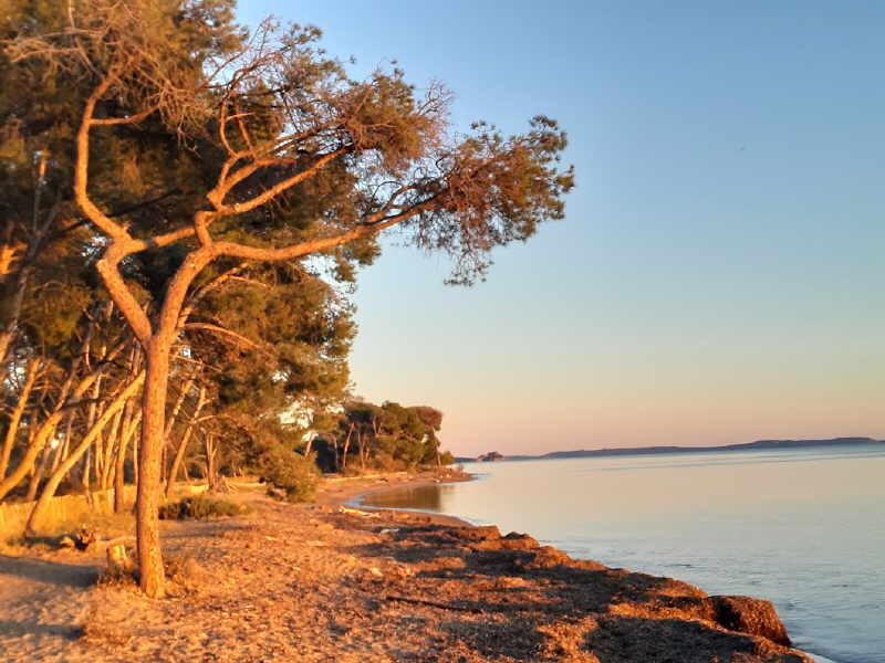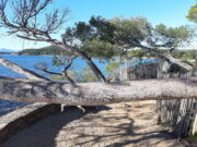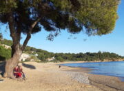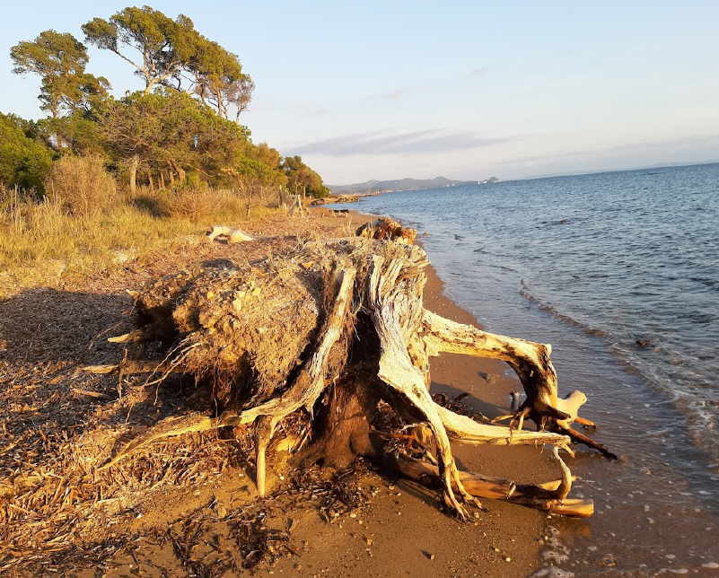 Von La Londe-Port nach Osten geht es über Plage Miramar, Plage de Tamaris, Plage de l’Argentière immer am Wasser entlang. Dann weiter über Felsen zum Plage du Pellegrin, wieder hoch auf dem Sentier littoral zum Plage du Léoube usw. bis zum Fort de Brégancon, dem Sommersitz der fanz. Präsidenten. 18 km hin und zurück.
