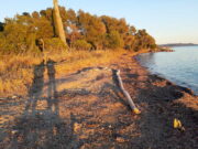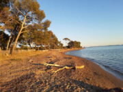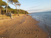 Von La Londe zu den alten Salinen (les vieus Salins d’Hyeères)Von La Londe-Port aus nach Westen führt ein Pfad direkt nach Hyeres-Les-Salins. Man läuft auf der schmalen Landzunge zwischen dem Meer (links im Süden) und den alten Salines von Hyeres (rechts im Norden) am Strand entlang.