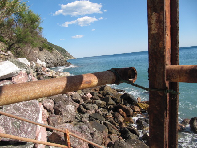 Moneglia am 17.5.2012: Hinter dem Geländer gehts 10 m runter