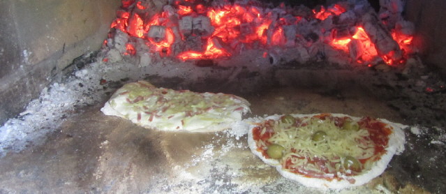 (1) Pizza mit Oliven am 1.9.2013 (2) Pizza mit Käse
