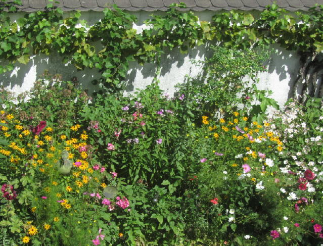 Blumen an der Gartenmauer am 8.8.2012