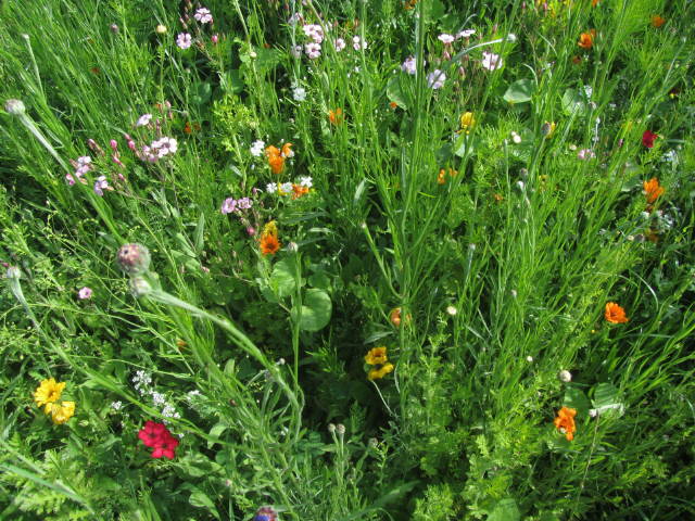 Blumenwiese am 10.6.2012: Eine Mohn als roter Tupfer