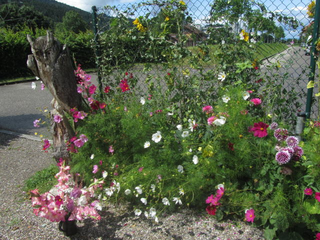 Eule mit Blumen am Gartenzaun 13.7.2012