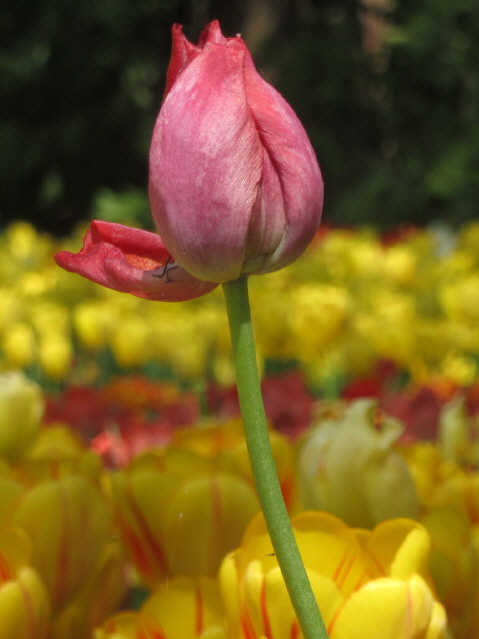 Tulpen auf der Mainau am 3.5.2012: Rot ganz alleine