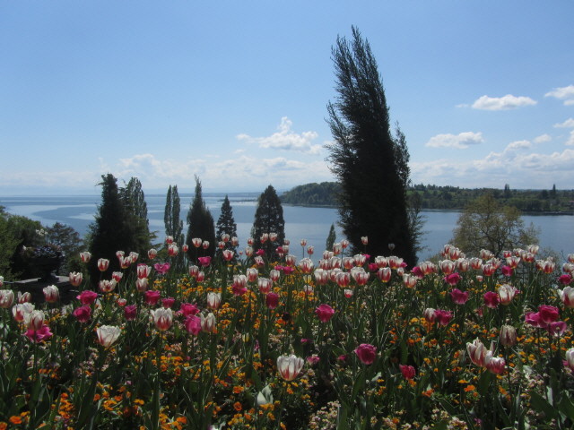 Tulpen auf der Mainau am 3.5.2012: Blick gen Konstanz