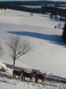 (4) Neuhäusle im Schnee (5) Pferde (6) Pferde-Trio