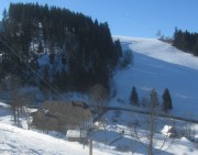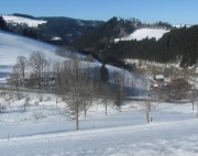 (1) Blick vom Sträßle „Auf den Spirzen“ nach Südosten über den Fallerhof unten im Spirzendobel hoch zum Oberen Fahrenberg bei Breitnau mit dem Beckenhof  – Winter 2011