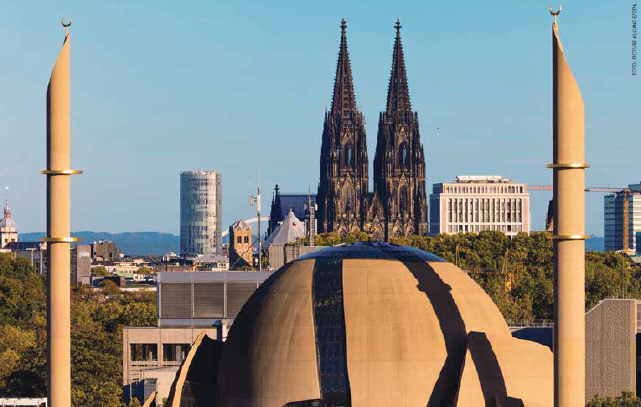 Wer das läppisch findet, sollte ein paar Kilometer weitergehen, nach Köln-Ehrenfeld. Dort haben die Muslims ihre Zentralmoschee errichtet, die größte in Deutschland, wahrscheinlich in ganz Europa, betrieben und überwacht von der DITIB, der türkischen Religionsbehörde, die ihrerseits der Regierung, mithin dem Präsidenten untersteht. Besuchern präsentiert sie sich als Ort des Friedens, der Hingabe und des Segens, verbunden mit der Anweisung, passende Kleidung zu tragen und die Schuhe auszuziehen; Frauen werden ermahnt, ihr Dekolleté zu bedecken und sich ein Kopftuch umzubinden. Telefone sind auszuschalten, der Gebrauch von Foto- und Videokameras ist untersagt.