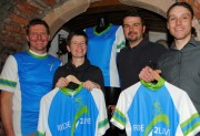 Der neue Vorstand von „Ride2Live“ mit den neuen Laufshirts: Klaus Ehret (Schriftführer), Kathrin Schenk-Kaiser (Kassiererin), Stefan Weiß (2. Vorstand) und Benjamin Rudiger (Vorsitzender) (v.l.). Foto: Gerhard Lück