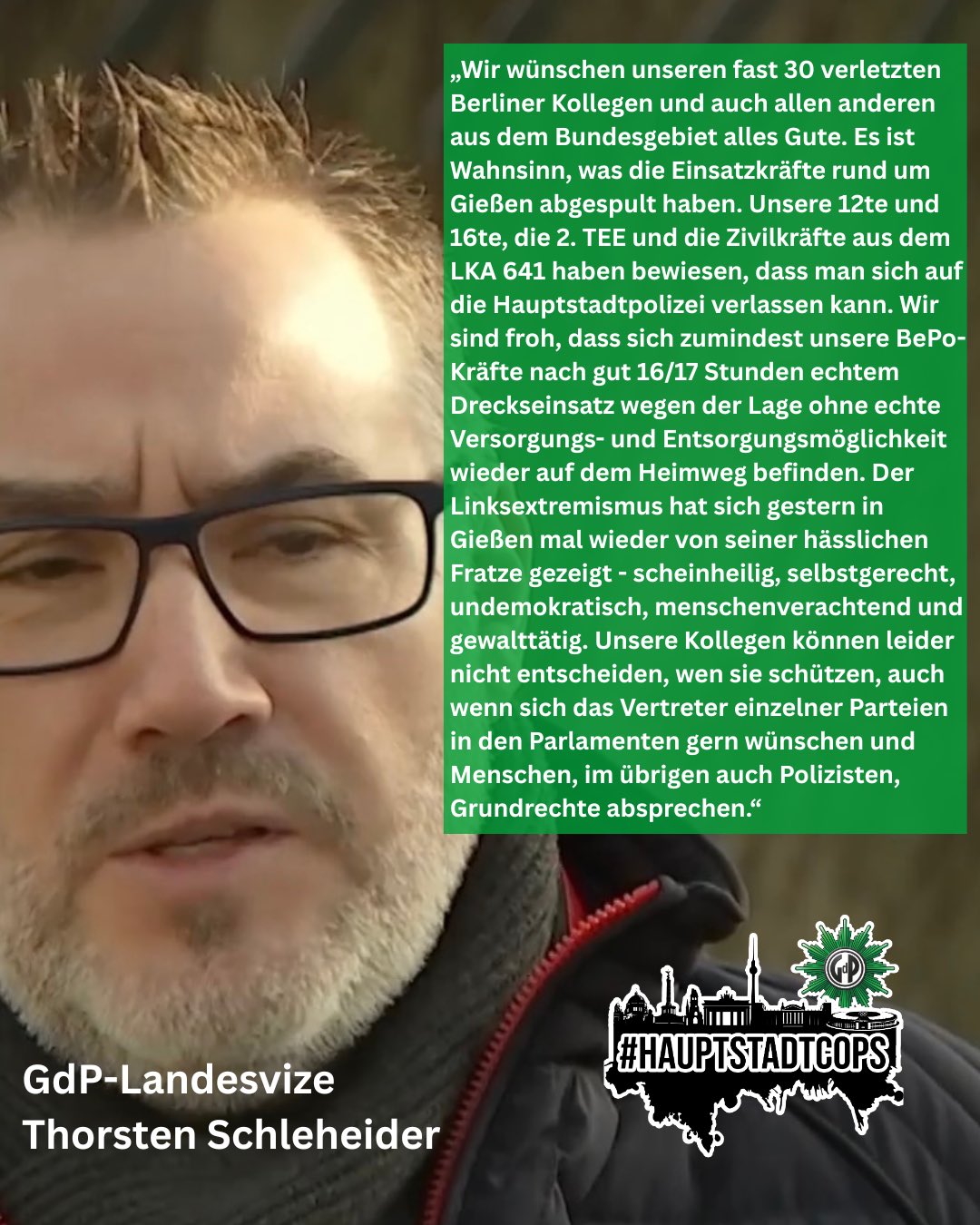 … „Scheinheilig, selbstgerecht, undemokratisch, menschenverachtend und gewalttätig“ seien diese Demonstranten, Protestler und Blockierer gewesen, so der Landesvize der Gewerkschaft der Polizei (GdP) in Berlin, Thorsten Schleheider.
