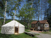 Camping Möslepark am 12.4.2011: Familie Busse mit Vivien und Marion Camping Möslepark am 12.4.2011: Mongolische Jurte und Holzwagen Camping Möslepark am 12.4.2011: Blick nach Osten