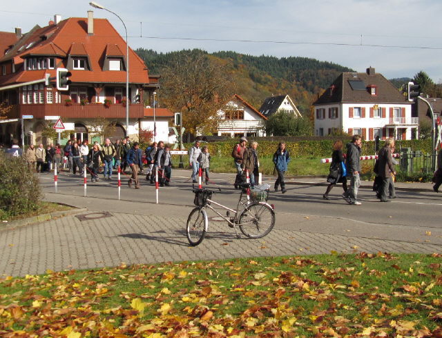 Bahnübergang Freiburg-Littenweiler am 30.10.2010 um 12.37 Uhr - Druchgang bei geschlossenen Schranken Bahnübergang Freiburg-Littenweiler am 30.10.2010 um 12.39 Uhr - der Höllentäler fährt durch