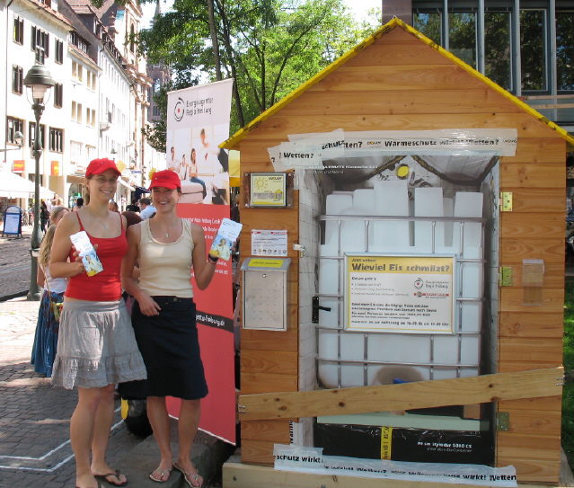 Die "Freiburger Eiswette" ist ein Projekt der Energieagentur Regio Freiburg und den Projektpartnern der Firma Götz und Moriz, unterstützt von der Stadt Freiburg, die selbst die Kampagne "Wärmeschutz im Altbau — verpassen Sie Ihrem Haus ein dickes Fell" gestartet hat. Ziel ist die Aufklärung über Klimaschutz und Kosteneinsparung durch Wärmedämmung . Am heutigen Samstag (11 bis 15 Uhr) und anschließend immer donnerstags (14 bis 18 Uhr ) gibt es am Aktionshaus einen Informationsstand mit Energieberatung.
