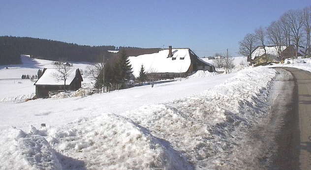 Blick von der Strasse Breitnau-Thurner nach Osten Fallerhof (Mitte) am 1.2.2004