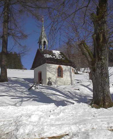 Kapelle am Weißtannenhof in Breitnau am 22.2.2003 Blick nach Westen zum Weißtannenhof am 1.1.2011 - links der Beckenbaschishof