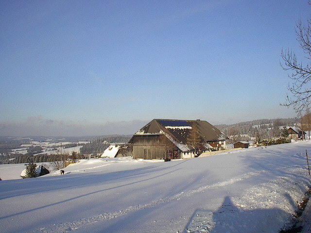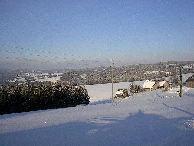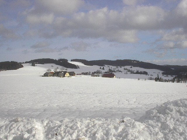 Blick von der Loipe über den Beckenhof (links der alte Hof) nach Nordosten am 24.2.2004