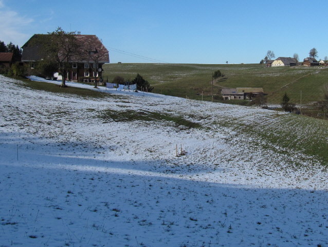 Blick vom Bläsibauernhof nach Osten am 5.2.2005 - hinten der Hugenhof