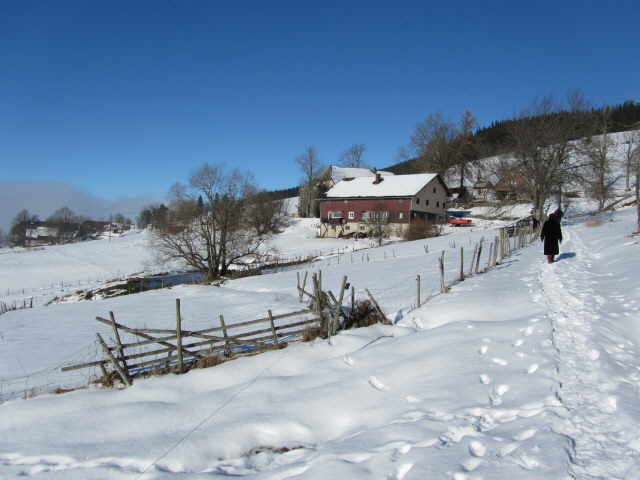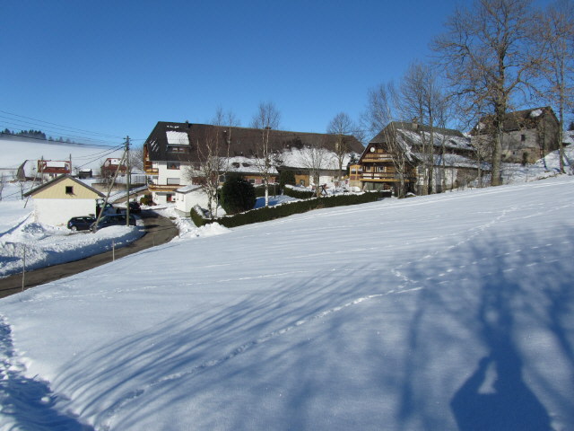 Blick von der Strasse Breitnau-Thurner nach Osten zu Clemenshof (links) und Fallerhof (Mitte) am 1.2.2004