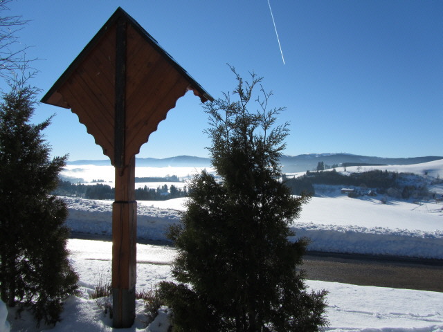 Tele-Blick vom Oberen Fahrenberg beim Beckenhof am 16.12.2008 nach Norden auf St. Märgen und Kapfenberg Blick nach Nordwesten zum neuen Beckenhof am 5.2.2005 - fairer Milchpreis Wegkreuz beim Beckenhof am Oberen Fahrenberg 16.12.2008
