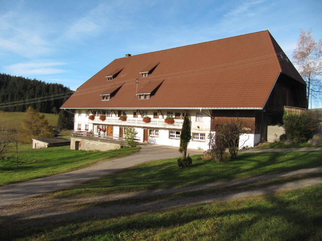 Der Beckenhof wurde 1978 auf dem Fahrenberg in 1100 m Höhe neu erbaut - in wunderschöner, nach Westen ausgerichteten  Aussichtslage. Blick auf die Schweighöfe, nach St.Märgen, St.Peter, zum Kandel bis hin ins Rheintal mit den Vogesen. Etwas unterhalb befindet sich der alte Hof unter Denkmalschutz. Eine Wohnung im neuen Hof ist voll rollstuhlgeeignet (2 Zi, Kü, Bad); Parken direkt neben dem Eingang.