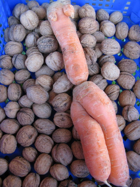 Möhren-Twin mit Herz am 22.8.2008 bei Kiener am Münstermarkt Karottenliebe am 14.102008 auf dem Münstermarkt Aubergine mit Johannisbeeraugen am 24.8.2009 auf dem Münstermarkt