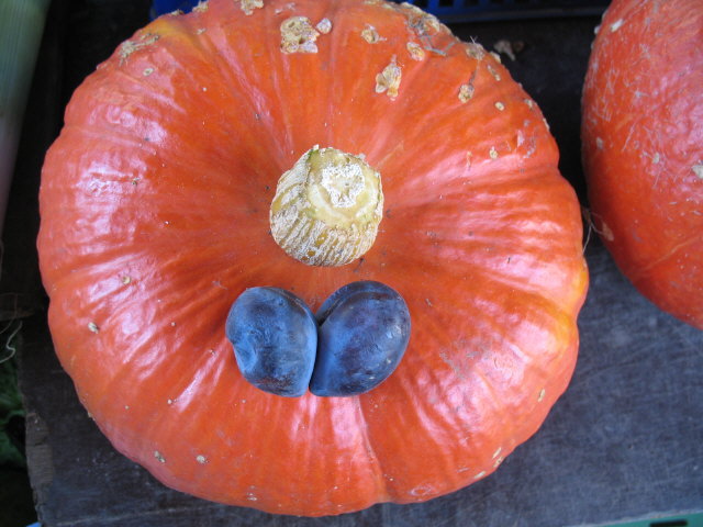 Zwei eng verschlungene Möhren am 30.8.2007 Auch eine Tomate kann eine schöne Nase haben Zwetschgen-Zwillinge auf Kürbis am 20.9.2007