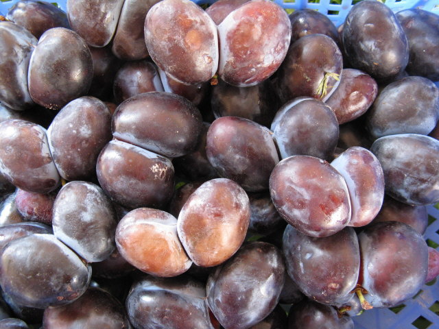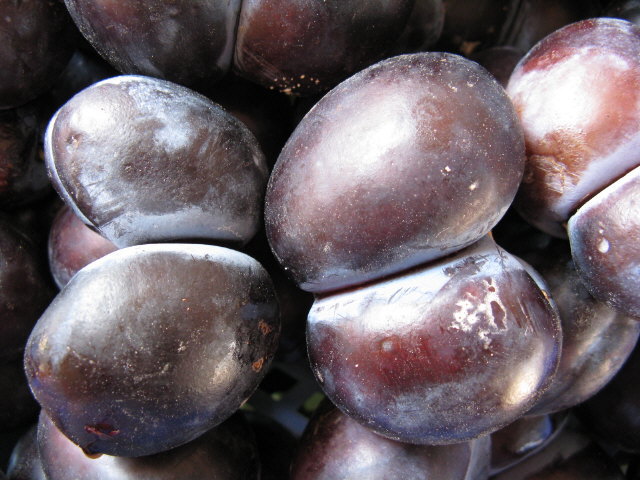Mirabelle - Zwillinge: Was wohl stellen sie dar? Zwetschgen-Zwillinge am 30.7.2008 bei Kiener auf dem Münstermarkt Zwetschgen-Zwillinge am 30.7.2008 bei Kiener auf dem Münstermarkt