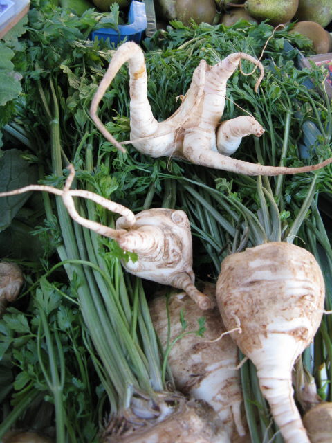 Zwei Möhren auf Nuss" am 14.12.2007 auf dem Münstermarkt Möhre auf Spinat am 15.1.2008 auf dem Münstermarkt Pastinaken-Osterhase auf Feldsalat am 4.3.2008