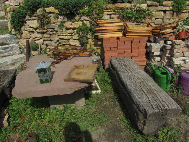 Baurelikte herangeschafft - da erinnerte der Garten schon etwas an ein
