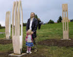 Simon Stiegeler mit Tochter Amelie und seinem Werk "Triad". (Foto: Seifried)