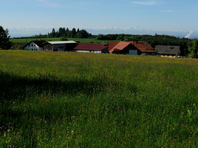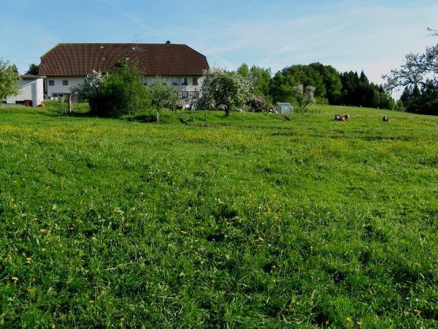 Blick nach Süden zum Boll-Hof ion Rötenberg südlich Rippoldsried am 17.5.2009