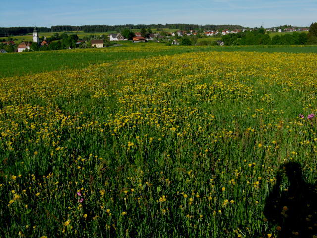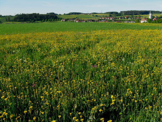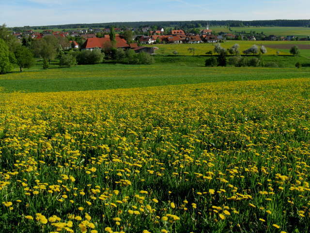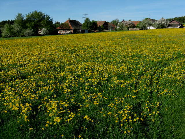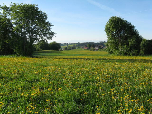 Blick nach Osten über Buggenried am 17.5.2009 - Löwenzahn überall