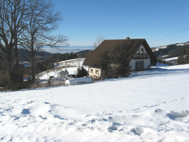 Blick nach Norden zum Oberen Steingrubenhäusle am 12.1.2009 Blick von "Auf der Eck" nach Westen über den Klausenhof in Rohr und den Rheintalnebel zu den Vogesen am 12.1.2009 Tele-Blick von "Auf der Eck" nach Westen über den Klausenhof in Rohr und den Rheintalnebel zu den Vogesen am 12.1.2009