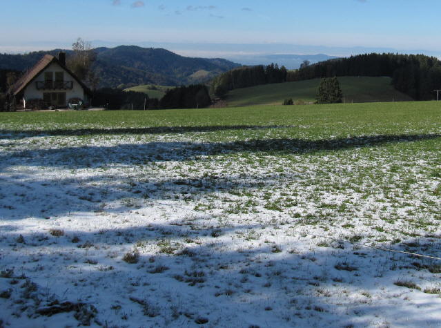 Blick nach Nordwesten über das Heitzmannsberghäusle zum Kandelberg am 19.10.2009 - der erste Schnee Blick nach Nordwesten zum Heitzmannsberghäusle am 19.10.2009
