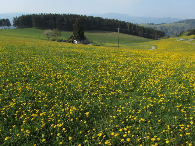 Tele-Blick von "Auf der Eck" bei St.Peter nach Süden St.Peter zum Hochgericht am 7.5.2009 - Löwenzahn überall Blick von "Auf der Eck" nach Süden über St.Peter zum Lindenberg am 7.5.2009 - gelber Löwenzahn überall