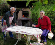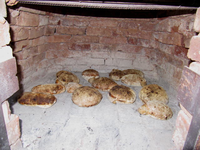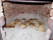 Brotbacken am 21.10.2009: Der Ofen wartet schon Brotbacken am 21.10.2009: Glut aus dem Ofen räumen Brotbacken am 21.10.2009: 13 Brotlaibe backen auf dem heißen Stein