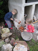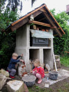 Holzbackofen am 4.7.2010 Holzbackofen mit Katze am 23.4.2011