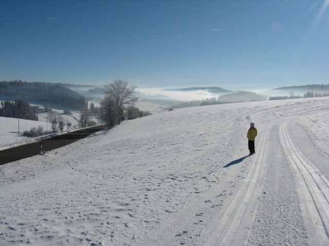 über die Jostalspur am 19.1.2008 - überm Einsiedel steigt Nebel auf |