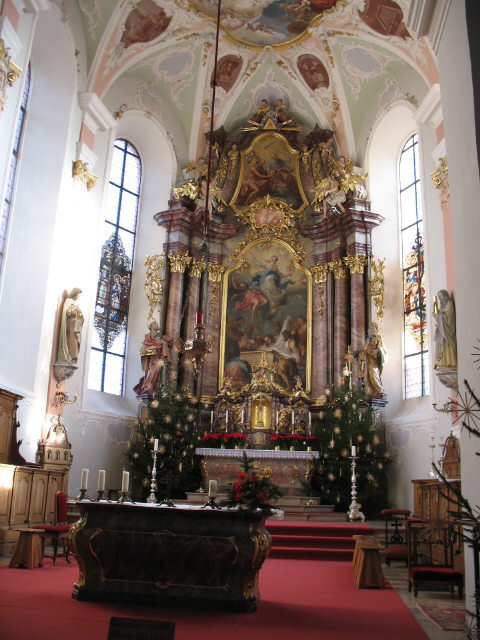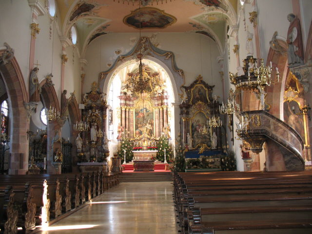 Geht man durch die alte Holztüre in die Kirche Mariae Himmelfahrt in Kirchhofen hinein, dann kommt man aus dem Staunen zunächst gar nicht heraus - unverhoffte Vielfalt, Prunk, Malereien, Gold, üppiger Barock, ... Und wenn durch die vielen Fenster noch die Sonne hineinblinzelt, dann kann man hier eine  einmalige Atmosphäre erleben.