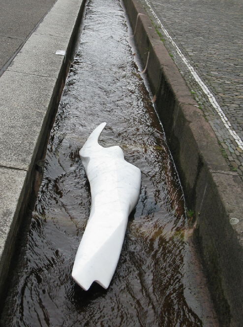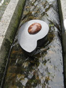 (16) Metallscheiben im Wasser von Jörg Siegele (17) "Kanalarbeiter" aus weißem Marmor von Jörg Jauss